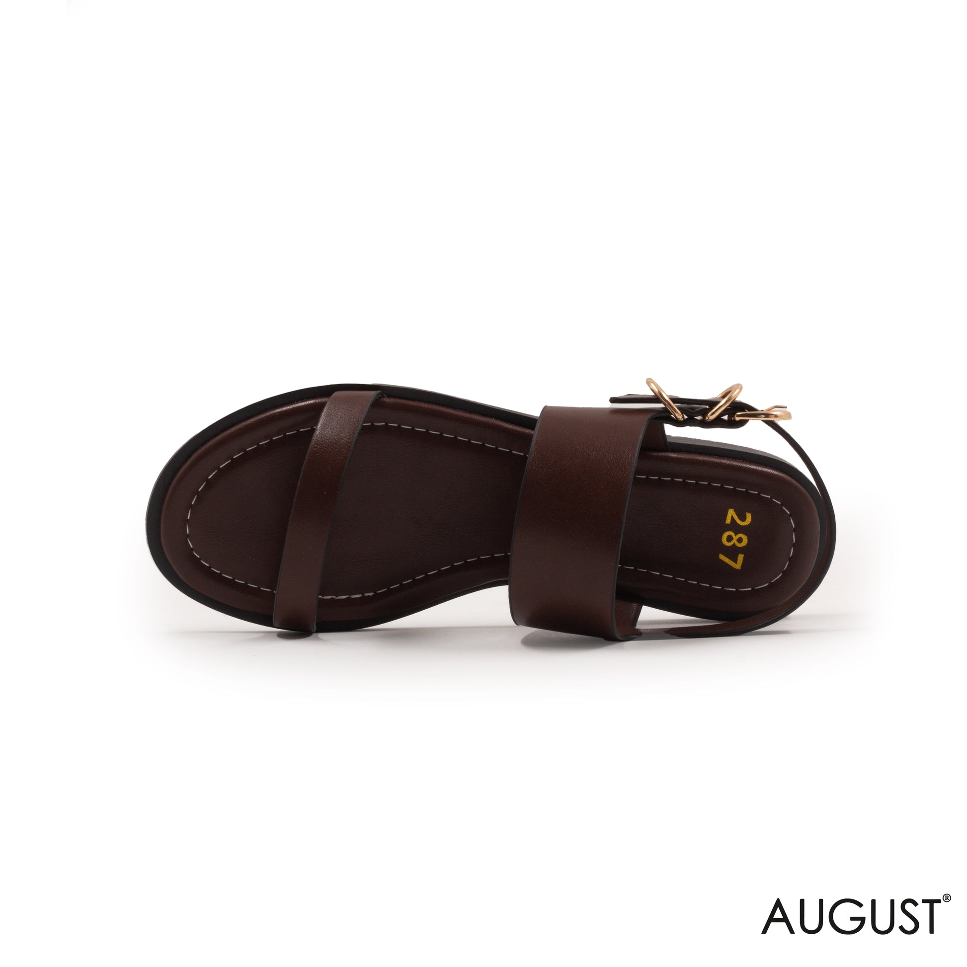 SMOOTH DARK BROWN LEATHER FLAT SANDALS WITH BUCKLED